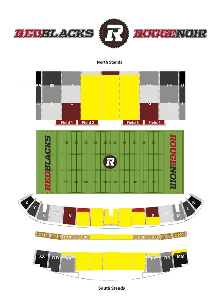 According to the Redblacks website, eight sections on the South Side (“North Side Sucks!”) are completely sold out – R, RR, S, SS, T, TT, QQ & UU. Three other sections (P, Q & U) are also currently half-filled.