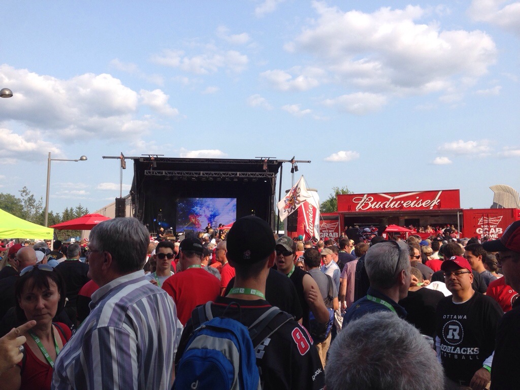 – In a surprising move, the Redblacks come out for warm ups sporting their black home jerseys