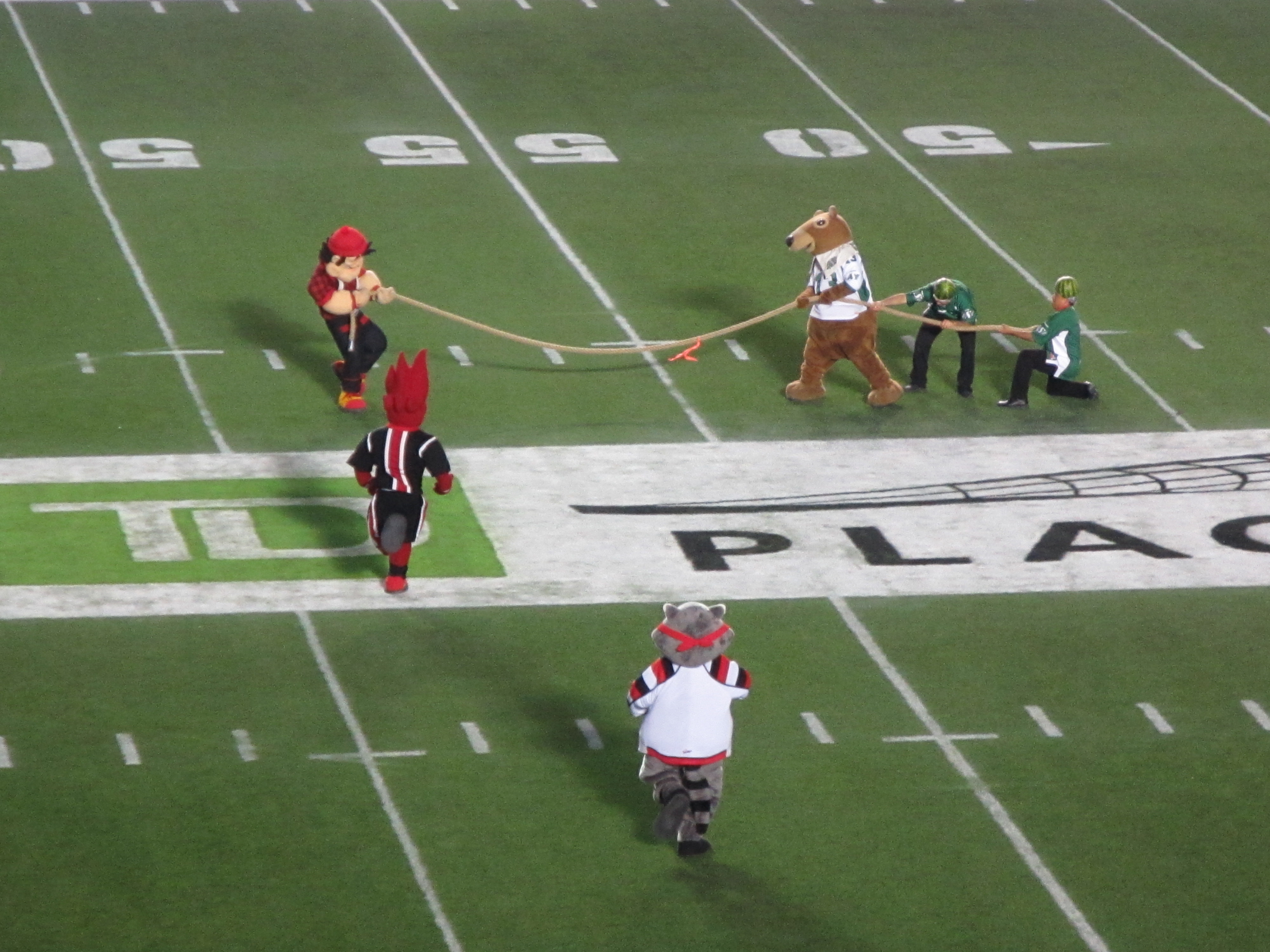 – Facing a 2nd and 2 on the Als’ 30 yard line with 1:30 left, Burris comes up short on a QB sneak while his helmet is ripped off his face. Inexplicably there’s no flag, probably because the refs believe Burris wears a magic helmet that has the power to violently rip itself off of his head