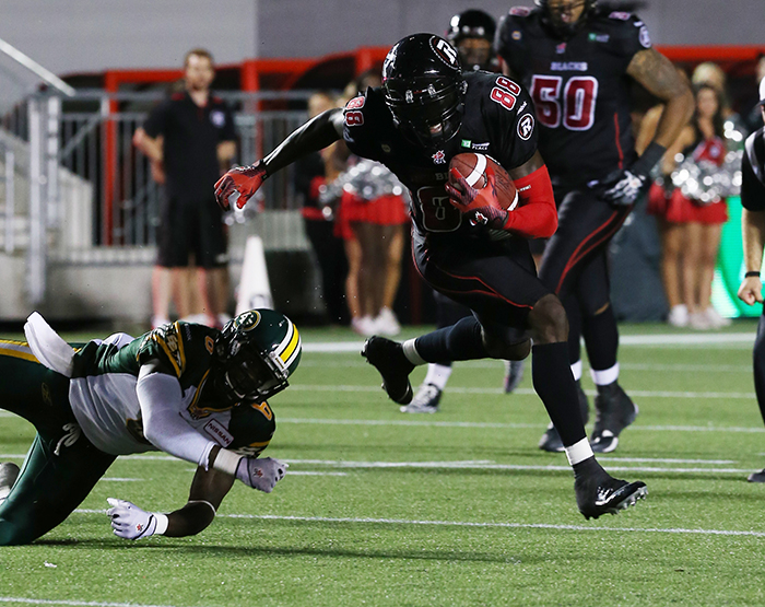 – Nobody on defence wants to make a tackle as James Rogers rumbles 17 yards through weak arm tackles on a WR sweep to the house, giving the Als a 10 point lead 3 plays and 1 minute after the Redblacks pulled within 3