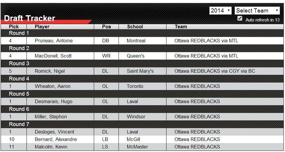 – With the 13th pick, the Redblacks selected WR Scott MacDonell, a 6 foot 5 inch 230 pound playmaker. He figures to be a depth player at this point but could blossom into a serious threat.
